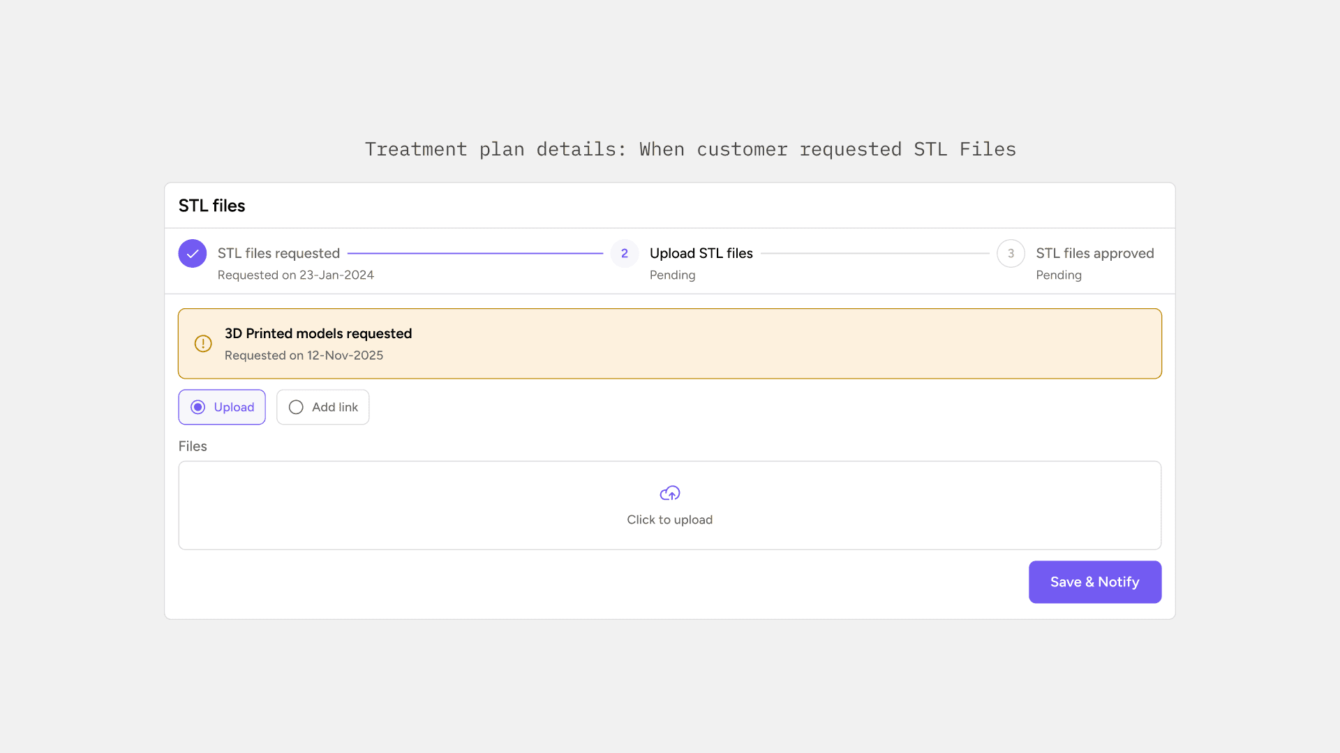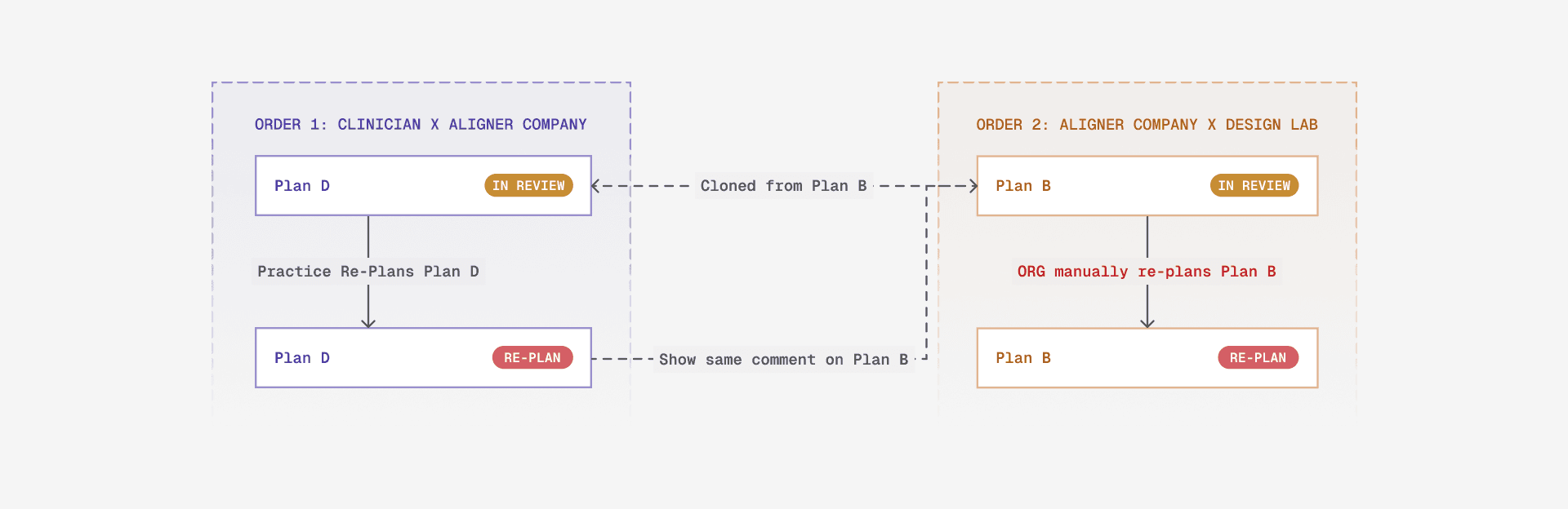 At this stage, clinicians were already connected to aligner companies, with active planning orders in use. However, many aligner companies outsourced planning to external labs that were not part of the workflow. The challenge was to support this without disrupting existing clinician - aligner relationships.
